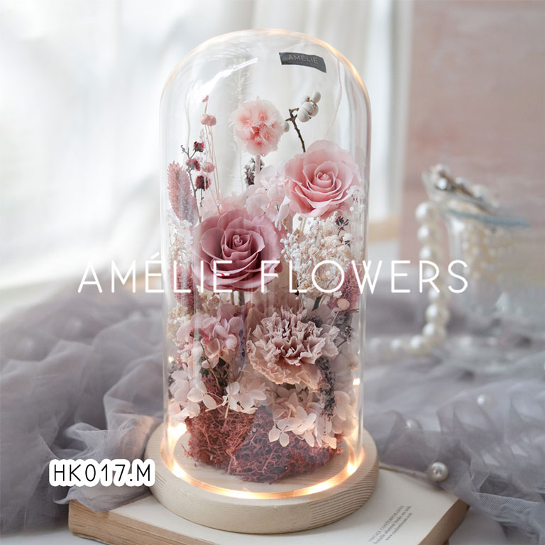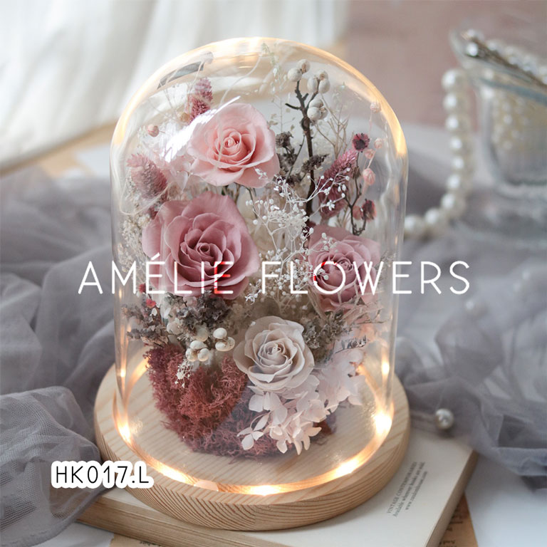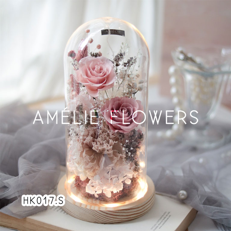 Hoa khô – Chụp thủy tinh đế gỗ – HK017